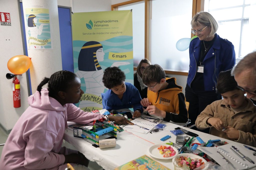Cette journée était surtout celle des enfants : quatre jeunes ont participé à un atelier de construction d’un enrouleur de bandes en LEGO. Imaginé par le papa d’une jeune patiente, cet outil permet d’enrouler automatiquement les bandes utilisées pour faire les bandages thérapeutiques. En plus d’être un outil pratique, il ajoute un côté ludique aux soins et permet d’impliquer les enfants dans leur prise en charge.