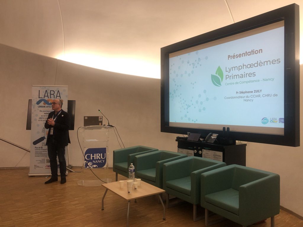 La première action nous emmène dans le Nord-Est de la France, à Nancy. Une soirée consacrée au lymphœdème s’est tenue aux Hôpitaux de Brabois – CHRU de Nancy. 60 professionnels se sont réunis pour assister aux interventions de l’équipe médicale et soignante du CCMR coordonné par le Pr Stéphane Zuily, ainsi que celle des bénévoles de l’Association Vivre Mieux le Lymphœdème. Ils ont pu en savoir plus sur les lymphœdèmes, leur prise en charge à l’hôpital et en ville, les techniques de kinésithérapie et les orthèses.